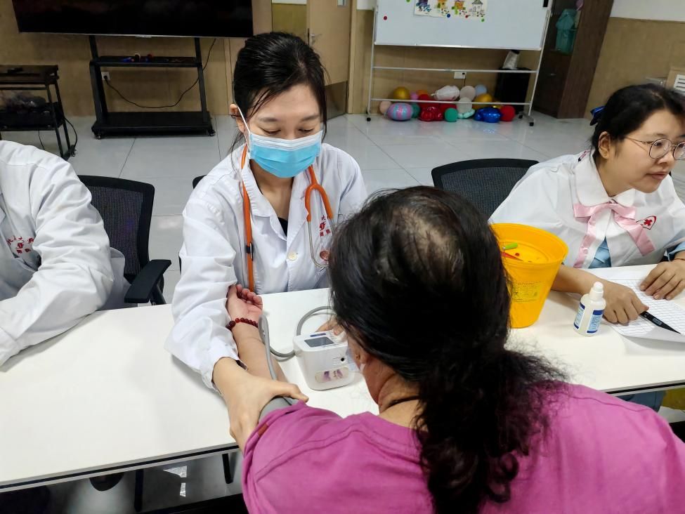 活动当日,北华大学附属医院南丁格尔护理服务队的志愿者们早早抵达养老中心,迅速有条不紊地布置起义诊场地。此次义诊涵盖了骨外科、心血管内科,专家们耐心细致地为每一位前来就诊的老人进行全面检查。测量血压、血糖、心电图、心肺听诊,每一个环节都做得认真仔细,不放过任何一个可能存在的健康隐患。