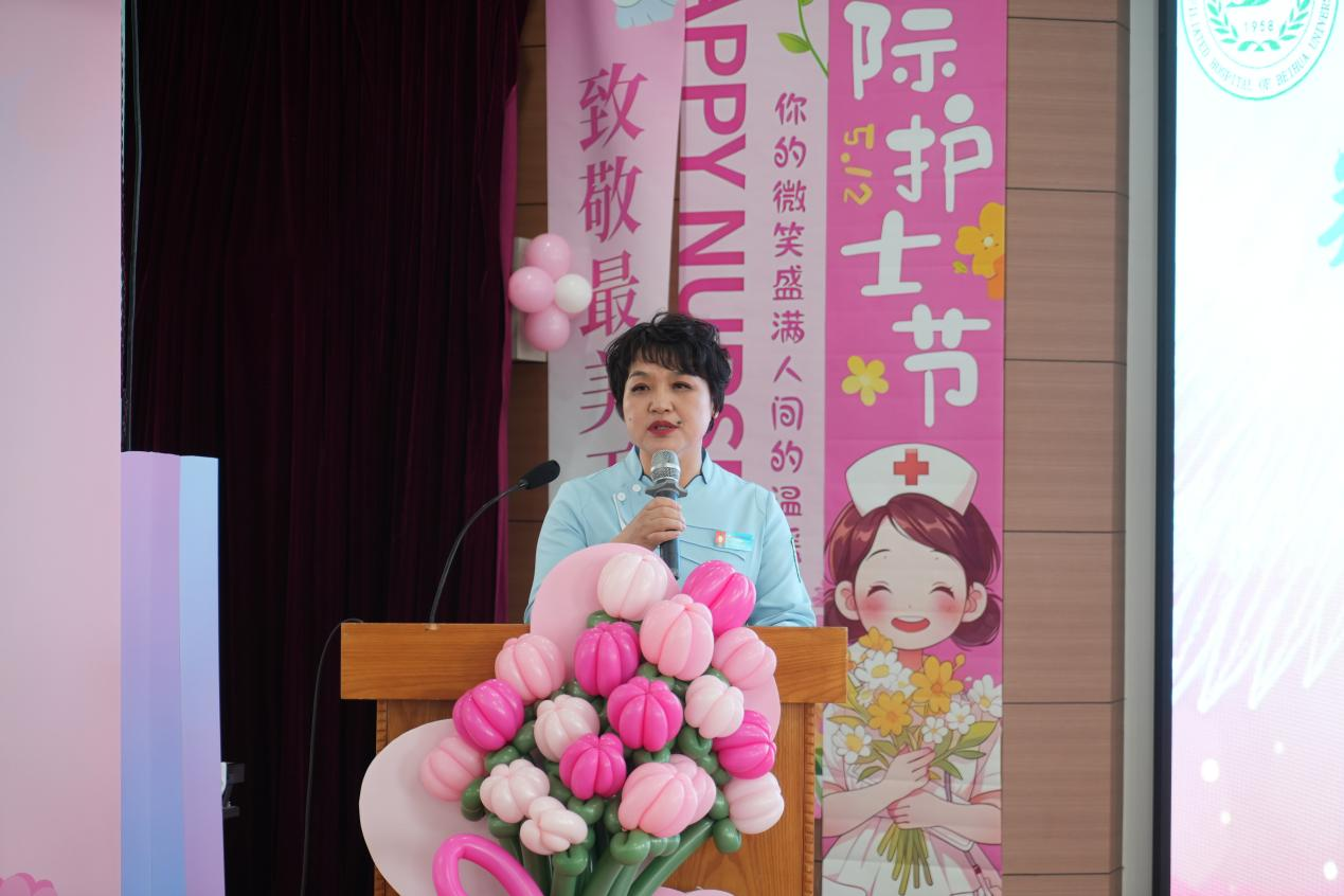北华大学党委常委、组织部部长、医院党委书记李静妍致辞。她强调,全院护理团队以“南丁格尔”精神为引领,颂扬北华附院护理人努力践行“敬佑生命、救死扶伤、甘于奉献、大爱无疆”的崇高精神。