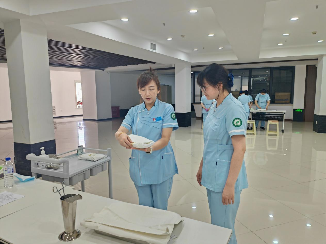 实操环节中,护理部干事李姝、栾娜全程跟进,对新入职护士的手法、步骤实时纠错:“这个角度偏了,再稍微低5度”“按压时肩、肘、腕在同一直线上,按压频率过快,胸廓没有充分回弹”“取无菌物品时,手不能跨越无菌区”……通过手把手校准动作、逐人模拟考核,确保每位新入职护士都能掌握操作要领。
